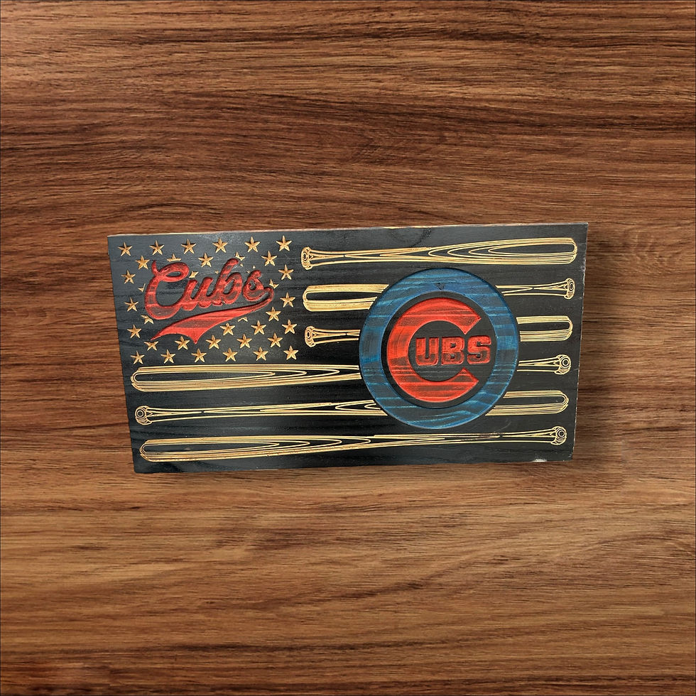 Rustic Wooden American Flag – Chicago Cubs Inspired Carved Wall Art